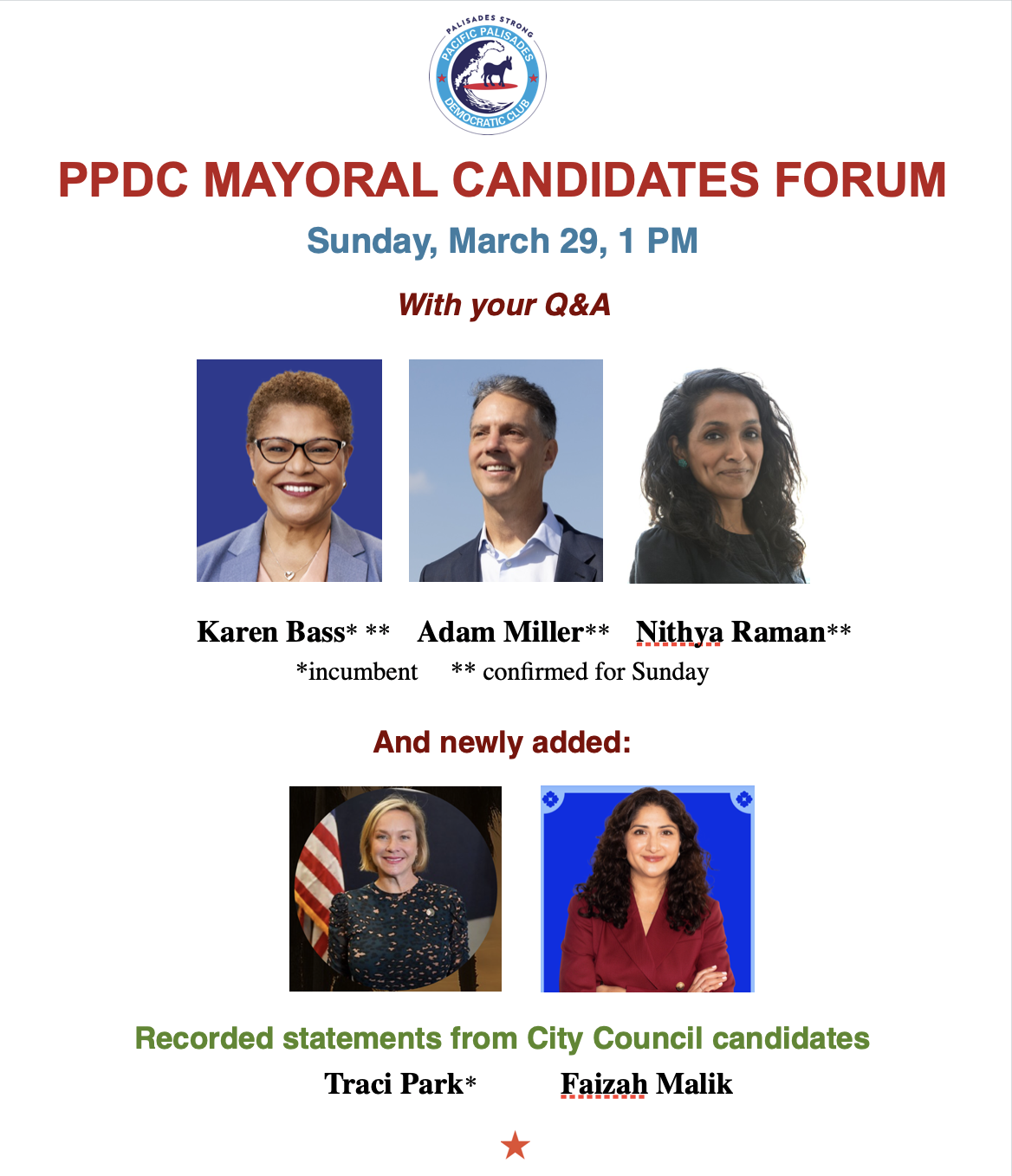 At the same time, we recognize the importance of working collaboratively for the good of our community. Should Mr. Pratt or another Republican be elected, we would be open to engaging constructively on issues that benefit Pacific Palisades and the city as a whole.